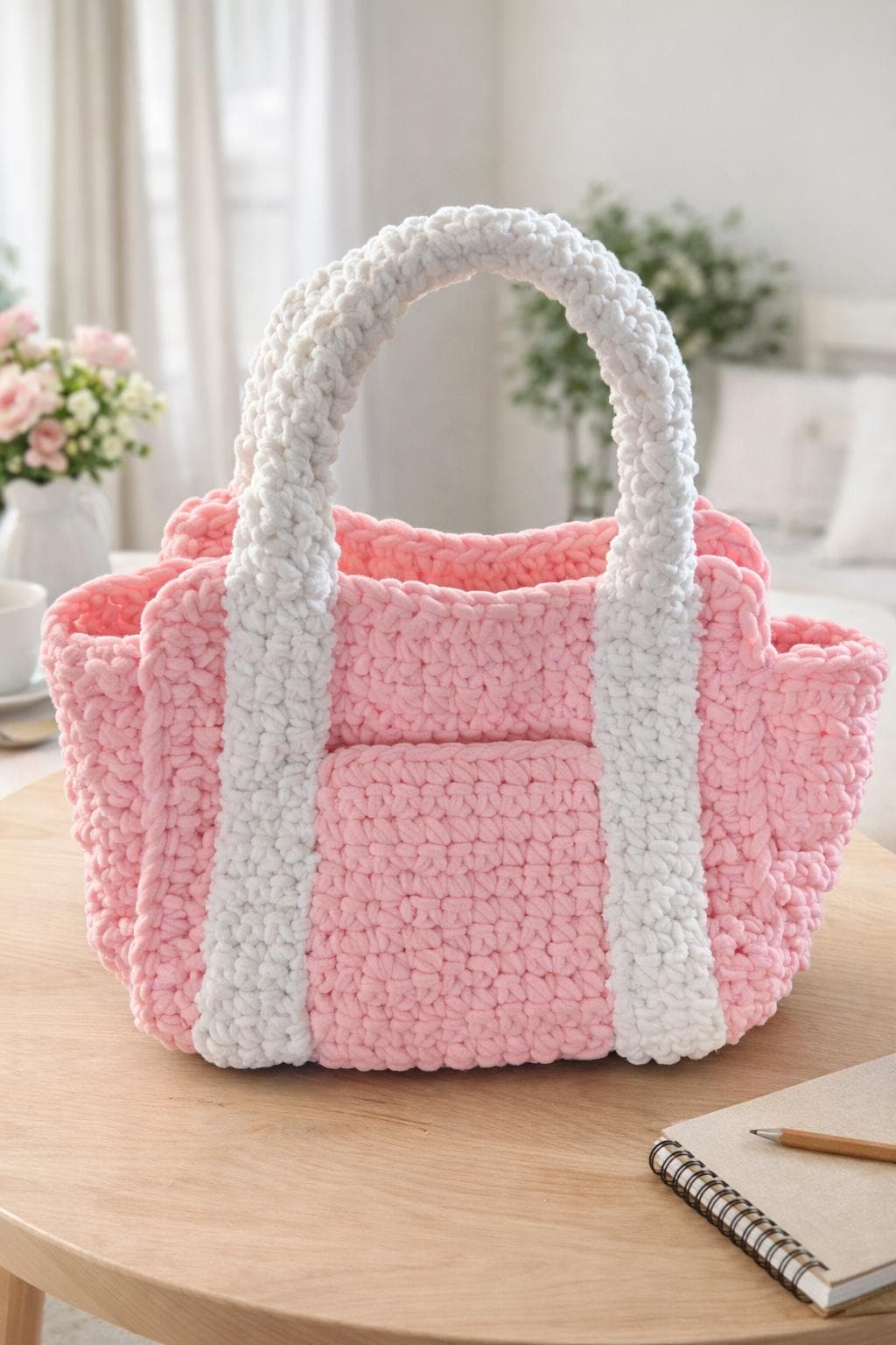 This handmade chunky crochet tote bag is crafted with ultra-soft, plush yarn that feels luxurious while maintaining its shape. Designed to be both stylish and functional, this bag offers a sturdy structure that will not stretch or lose its form, even with regular use.